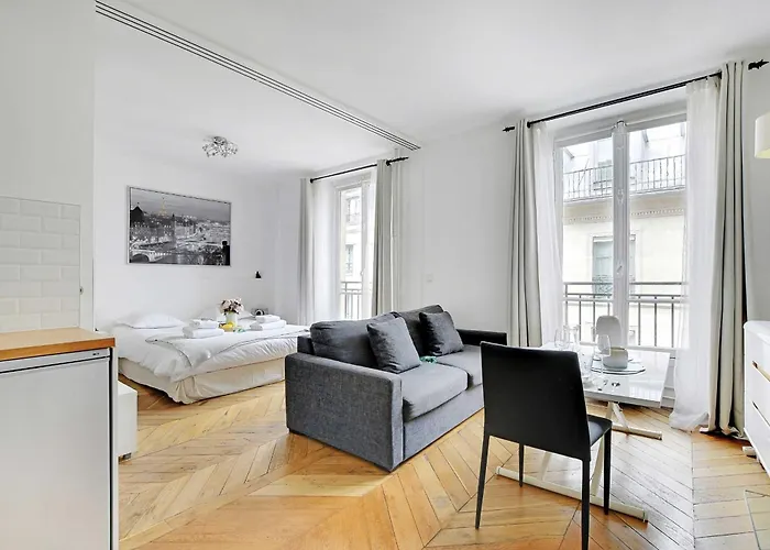 Alongsite with self-catering amenities such as a fully-fitted kitchen, this property provides guests with a dining area. Offering European dishes, Arty Le Restaurant is situated right near the apartment. Auber train station is 5 minutes' walk away.